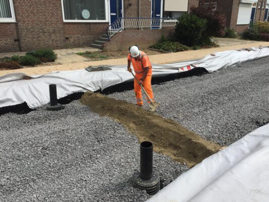 Project in Beeld: Groningen-West Indische Buurt Gemeente: Groningen Locatie: West Indische Kade Oppervlakte: ca. 520m2 Pakkethoogte: ca 30 cm Waterberging: ca 60m3 Systeemvulling: EcoBASE Recyclage Mix Uitvoering: Avitec, Robert Wijninga, Job Bolt Voorbereiding: Tauw Nederland, Bregt Huizenga Start Project: september 2024 De Gemeente Groningen is hard bezig om de stad klimaatadaptief te maken. Om de […]